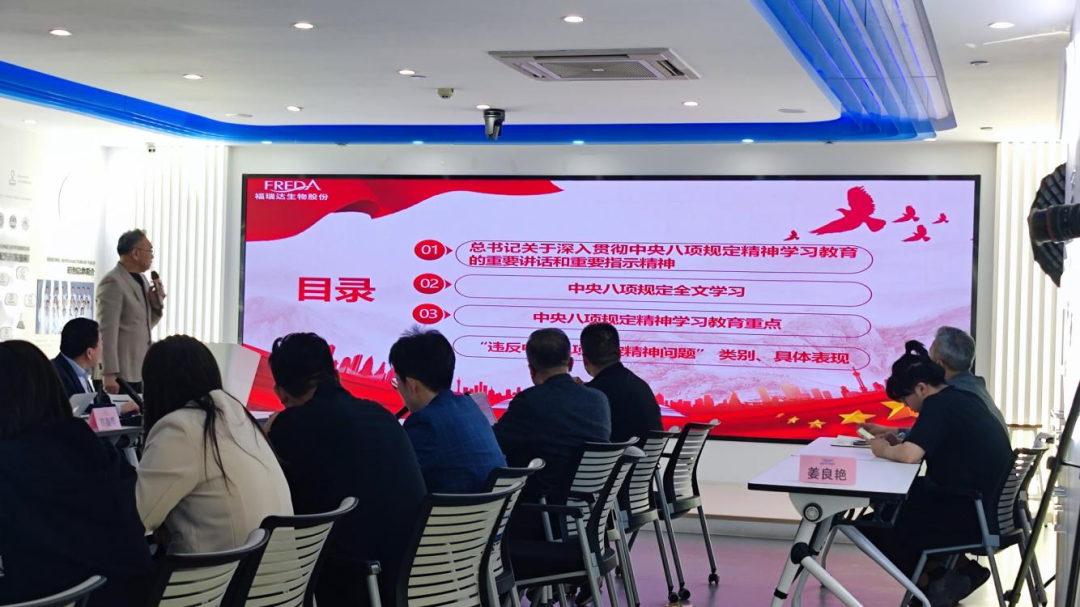 (福瑞達(dá)黨委委員、副總經(jīng)理,福瑞達(dá)生物股份董事長(zhǎng)、總經(jīng)理高春明圍繞八項(xiàng)規(guī)定精神學(xué)習(xí)教育講授黨課)