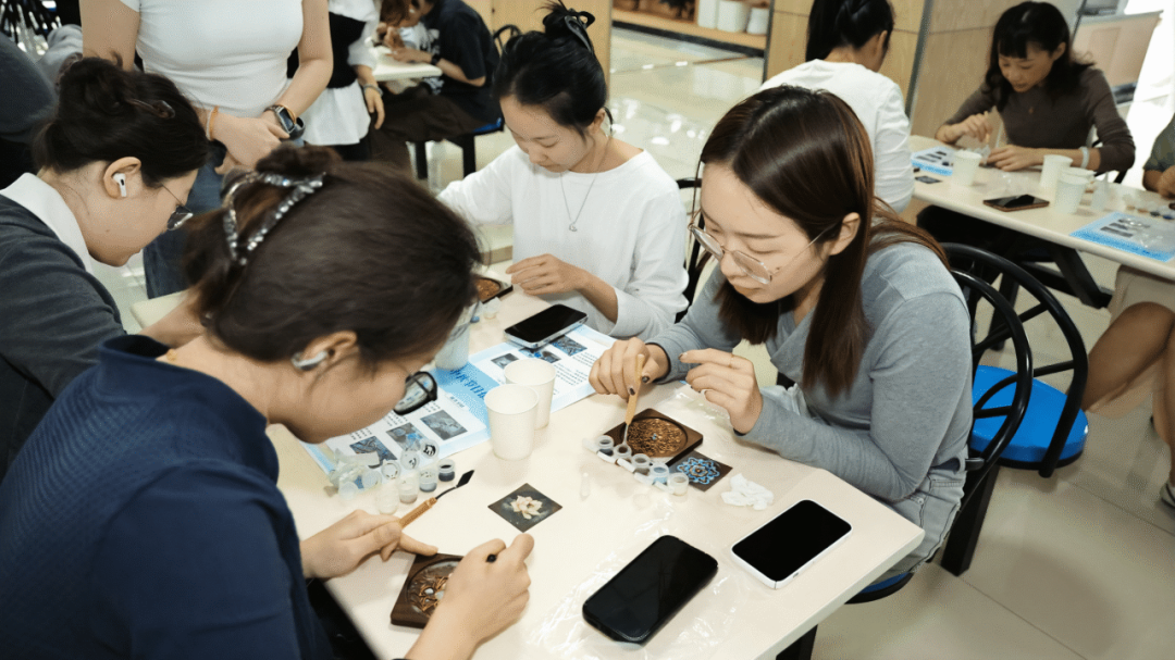 創作環節隨即開啟,職工們沉浸于掐絲琺瑯的精細制作中。借助活動預備的材料包,大家專注地為圖案填料上色,一件件獨具個人風格的作品初見雛形。現場交流熱烈,洋溢著對成品的期待與對活動組織的贊許。